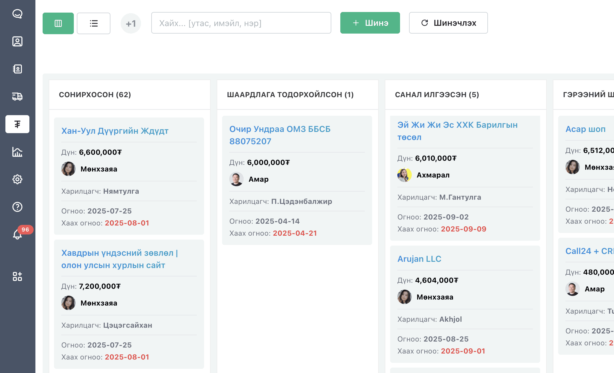 Pipeline хэлбэрээр компанийн хүрээнд явж байгаа бүх deal ийг хянах боломжтой.